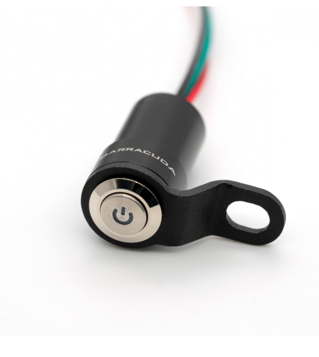 Bouton interrupteur on-off en aluminium étanche universel, dispose d'un voyant de fonctionnement on/off, marque Barracuda.
