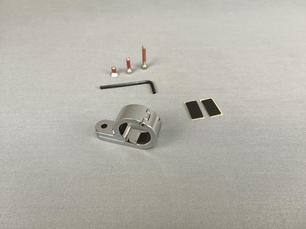 Bride de fixation en acier pour guidon ou tube Ø25,4mm (1 pouce), finition chromé, s'ouvre pour une fixation plus facile. Pièce de très bonne qualité.