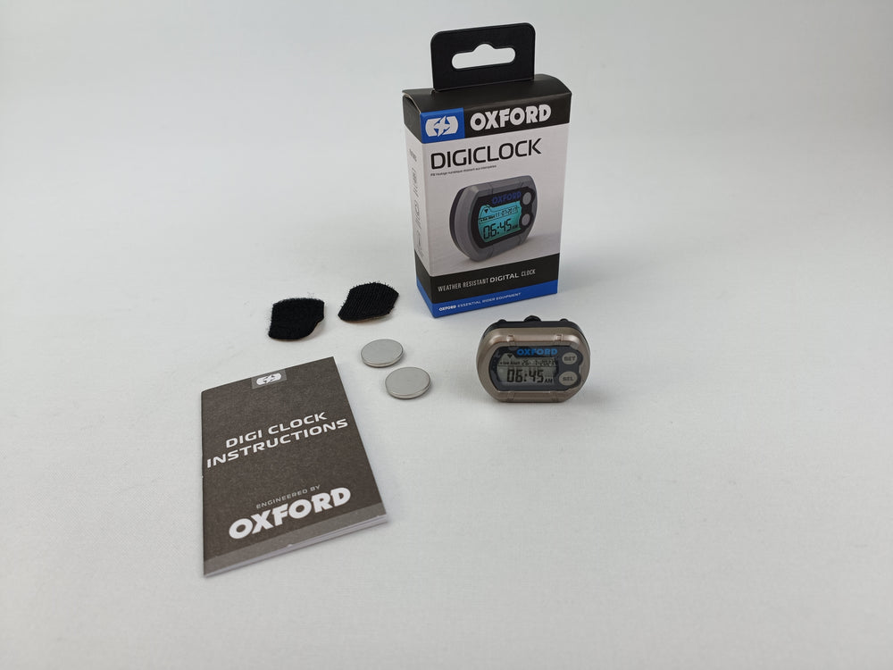 Horloge digitale universelle, se fixe à l'aide de scratch, facile à installer et à enlever de la moto, d'un scooter ou autre, marque Oxford.