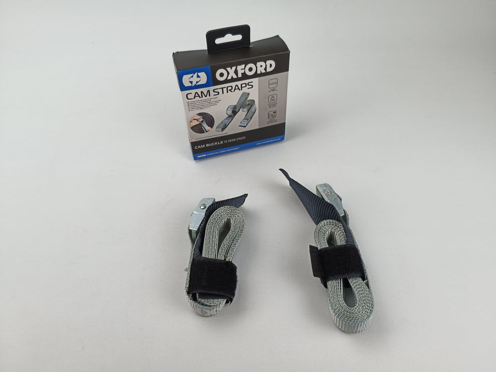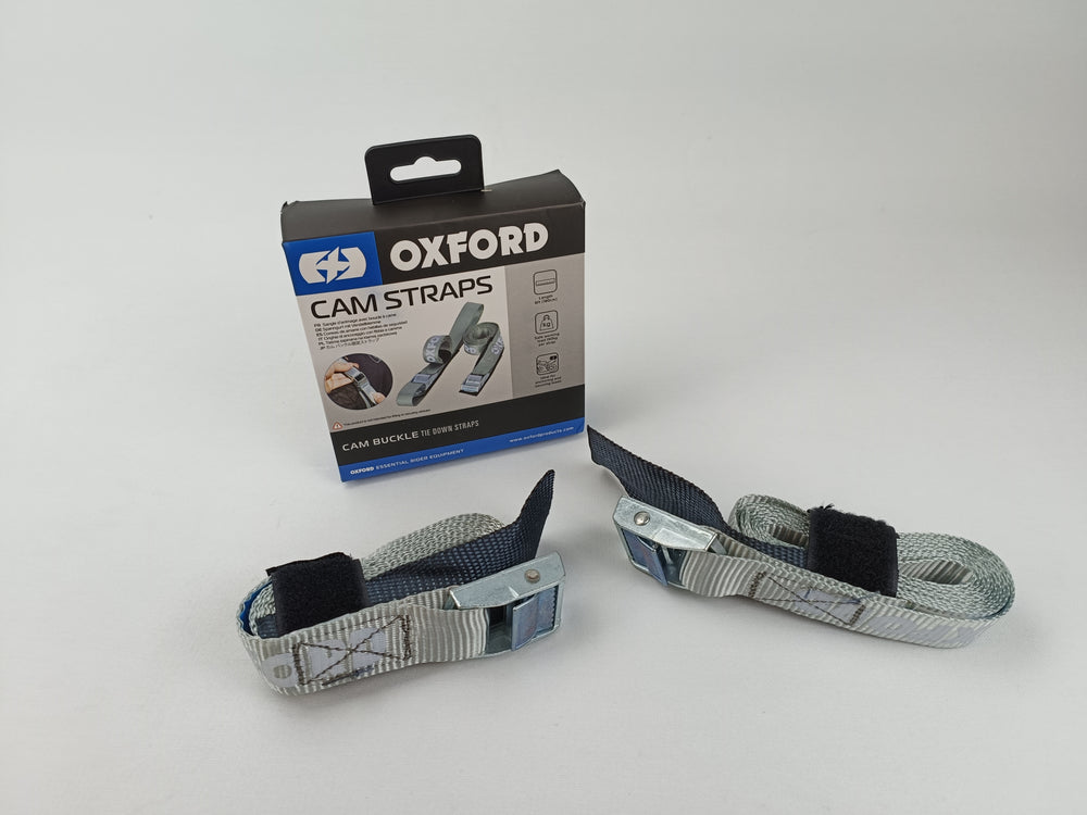 Paire de sangles d'arrimage boucle à came, grise universelle, pour fixation sacs et bagages, idéal pour les voyages, marque Oxford.
