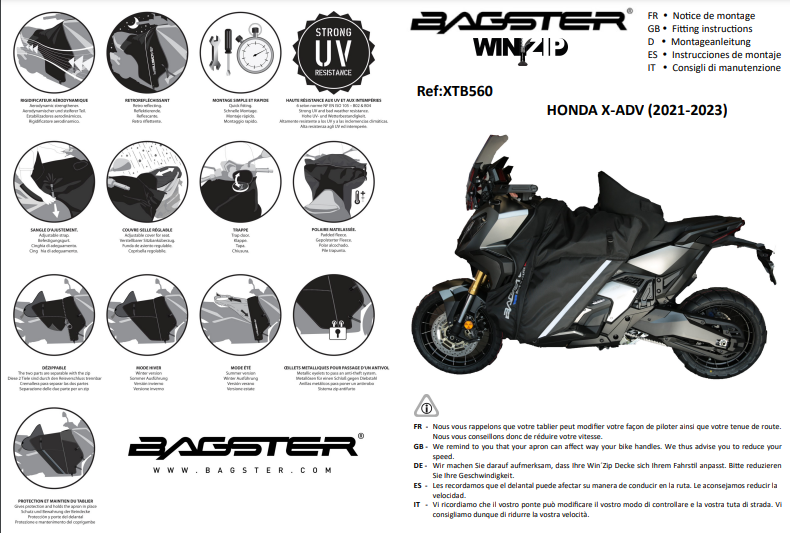 TABLIER BAGSTER WINZIP X-ADV 750 2021 À 2024 HONDA / RBXTB560