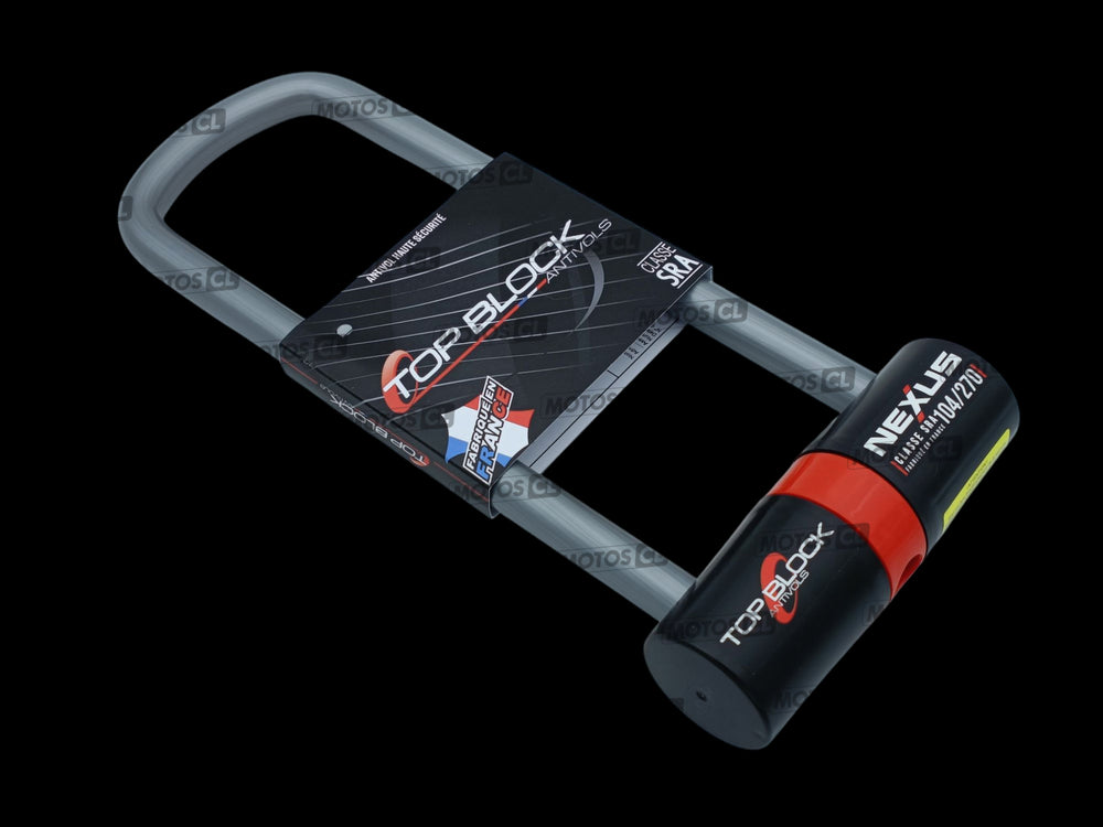 Protection contre le vol, antivol U universel et Kawasaki, Yamaha. Modèle NEXUS 104/270 certifié classe SRA, marque Top Block Fabriqué en France.