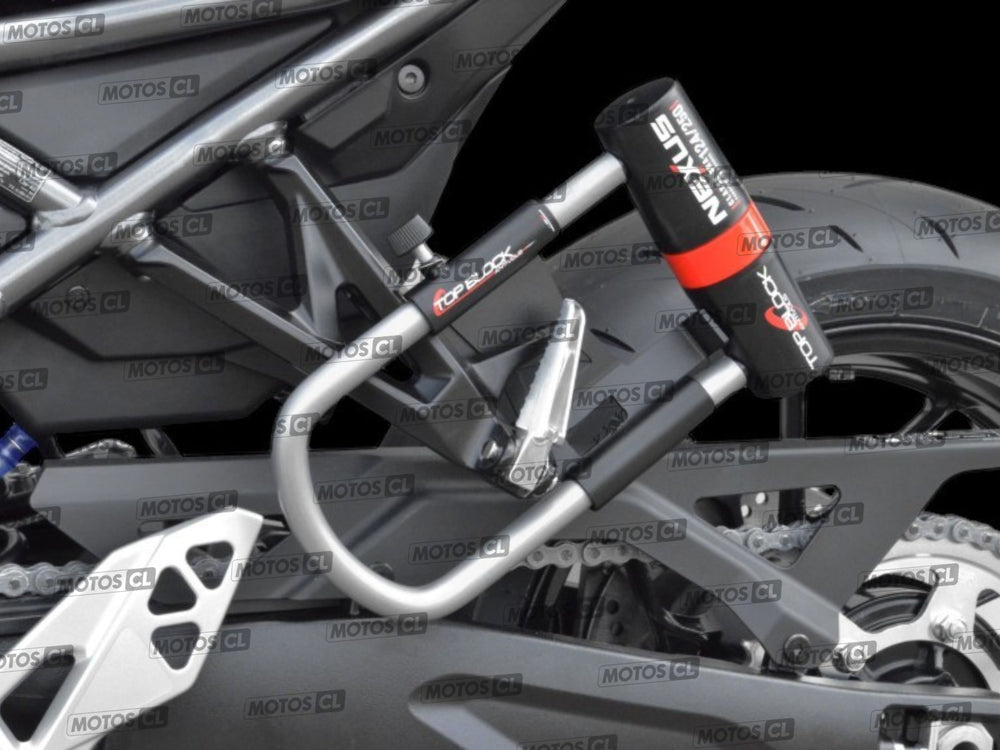 Support antivol U spécifique pour SUZUKI GSX-8S (exemple de montage photo N°4 et N°6), monte également sur GSX-8R. Modèles d'antivols Top Block préconisés : Nexus 124/250, marque Top Block Fabriqué en France.