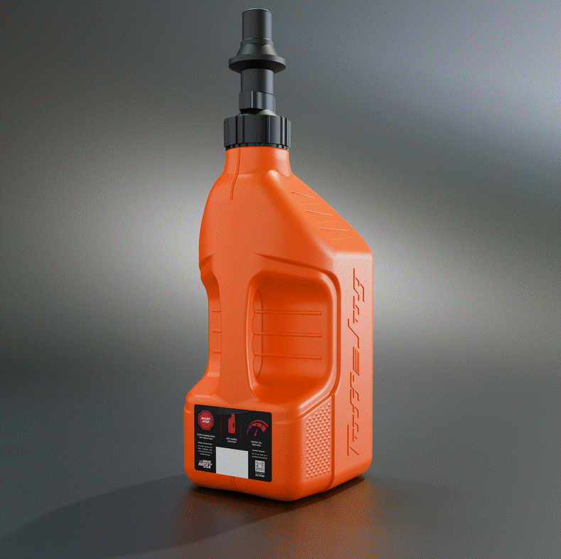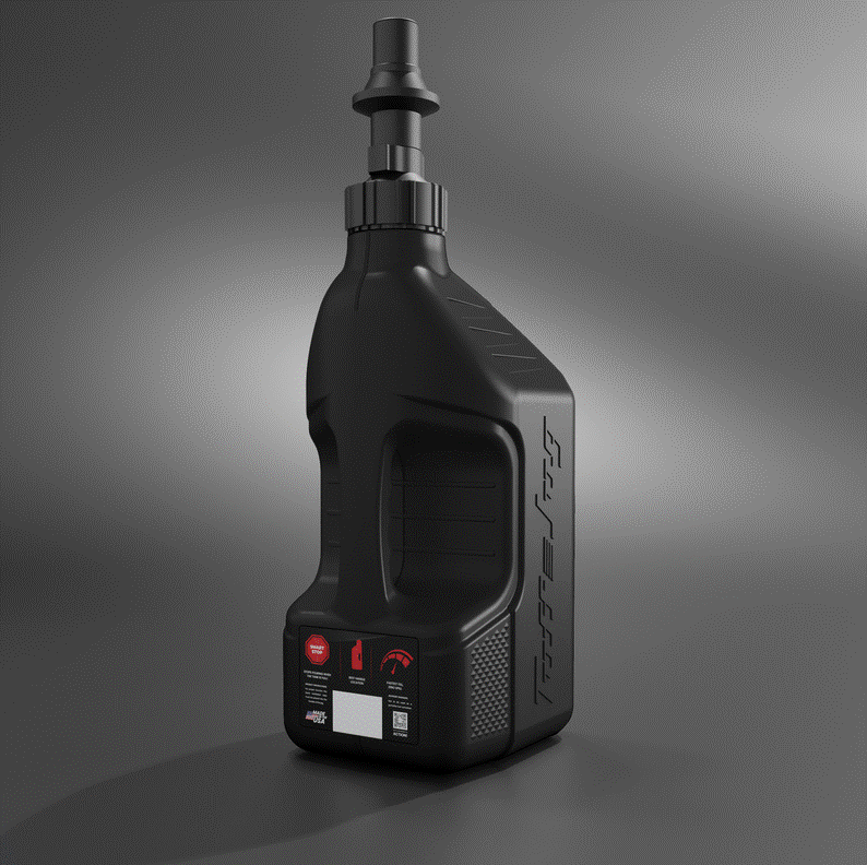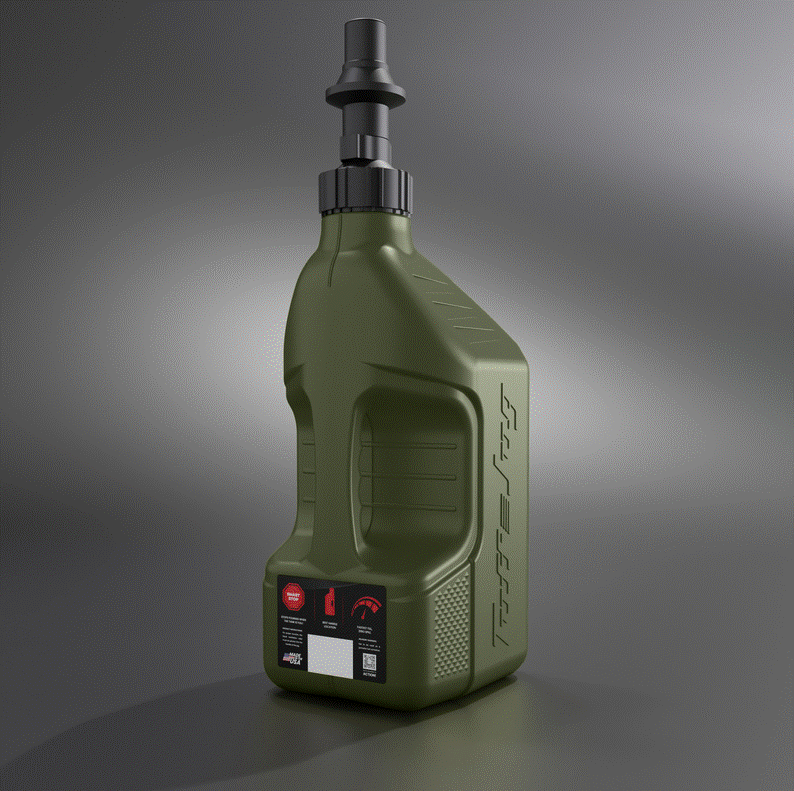 Bidon d'essence 10 litres TUFF JUG avec bouchon RIPPER, remplissage rapide : 10 litres en 12 secondes.