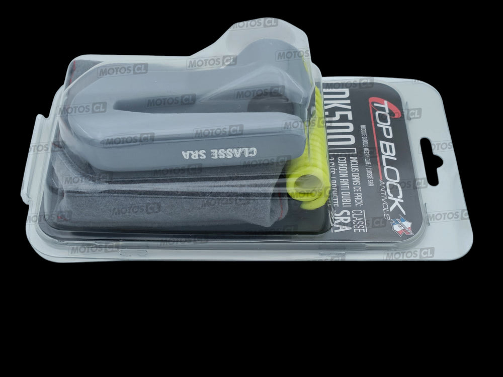 Protection contre le vol, antivol bloque disque universel modèle DK500 certifié classe SRA, axe Ø14mm* pour une résistance au sciage sans défauts, marque Top Block Fabriqué en France.