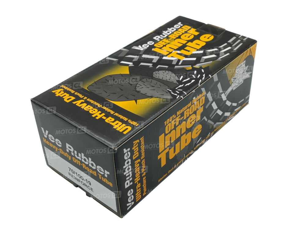 Chambre à air avant renforcée 70/100x19 avec valve droite TR4 (épaisseur : 3,0mm), marque VEE RUBBER.