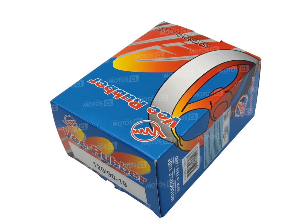 Chambre à air arrière standard 110/120-90x19 avec valve droite TR4. Marque VEE RUBBER.
