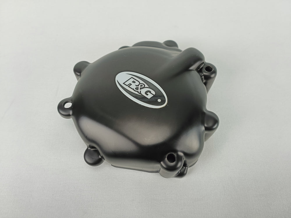 Protection moteur couvre carter alternateur (côté gauche) pour Suzuki 600GSR, 750GSR, 750GSX-S, marque R&G Racing. Reprend la forme et les points de fixation du carter d'origine.