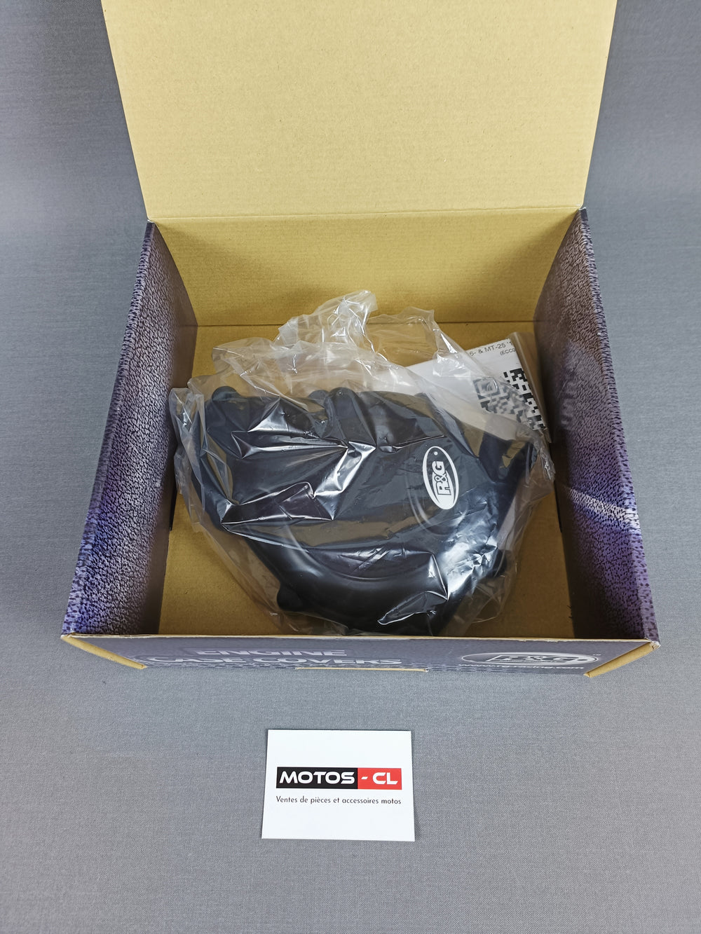 Couvre carter de protection côté gauche pour Yamaha YZF-R3, YZF-R25, MT03, MT125, MT25, en Polypropylène, couleur noir, marque R&G Racing.