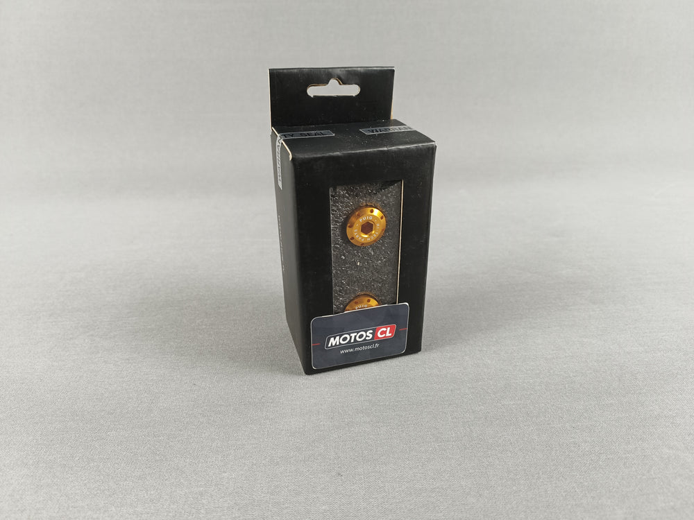 Diabolos de bras oscillant en alu anodisé or, diamètre M10x1,25 (dimensions photo N°4). Prévu pour certains modèles de Kawasaki et CFMoto, marque Puig.