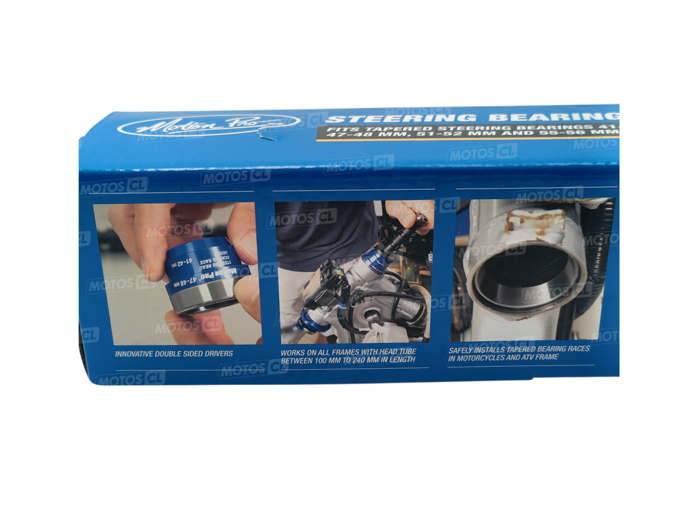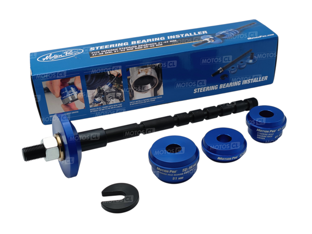 Permet l'installation en toute sécurité des cuvettes des roulements coniques de colonne de direction inférieur et supérieur à l'aide des bagues en aluminium bleues en fonction du diamètre (41-42mm, 47-48mm,51mm, 52mm, 55-56mm).
