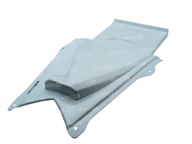 Passage de roue en plastique ABS peint à la couleur de la moto, livré avec support de plaque + support de catadioptre amovible, ainsi qu'un éclairage de plaque à leds. Les clignotants d'origine ne pourront pas être remontés, Il sera nécessaire d'installer des clignotants adaptables.