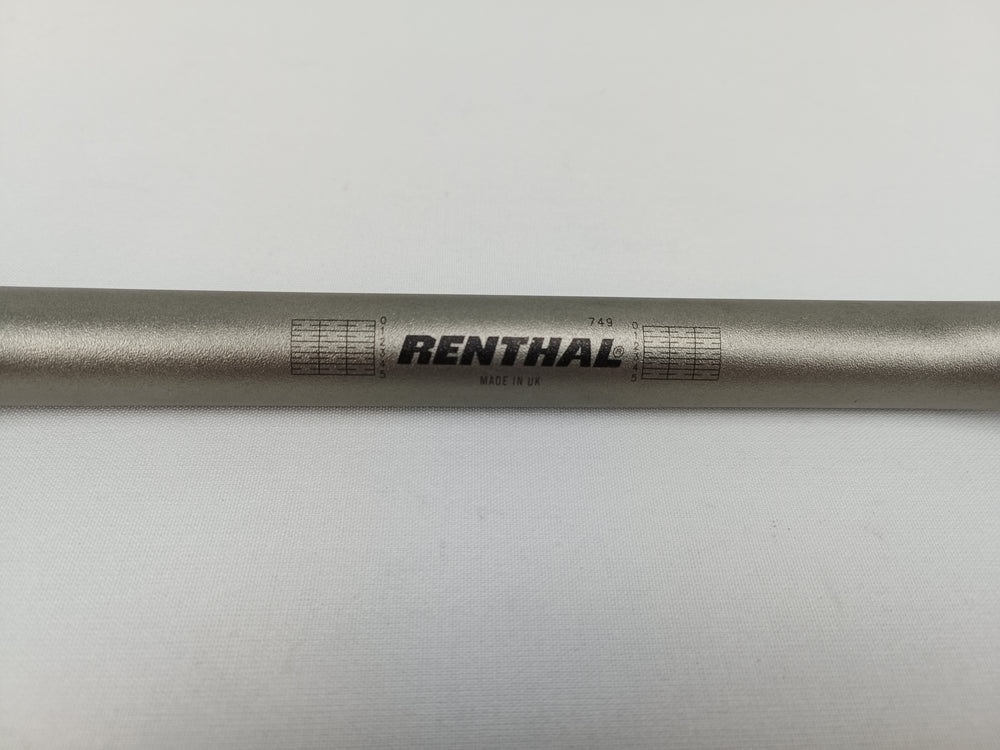 Guidon Renthal modèle 749 Road Wide en Aluminium anodisé titanium, logo Renthal en noir.
