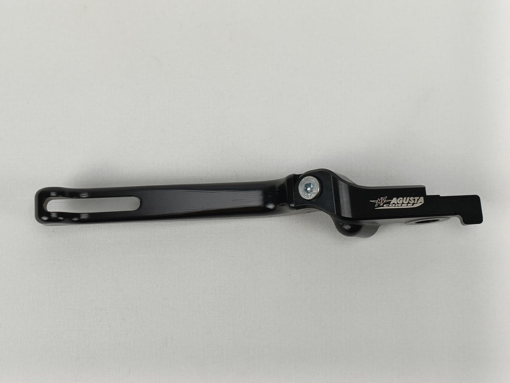 Levier de frein en aluminium usiné, long repliable, anodisé noir, logo MV Corse gravé, marque MV Agusta, pour F4-B4. Accessoire d'origine MV Agusta OEM.