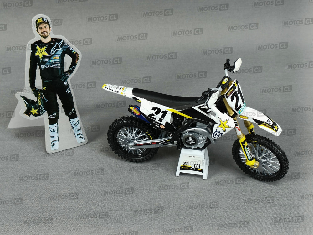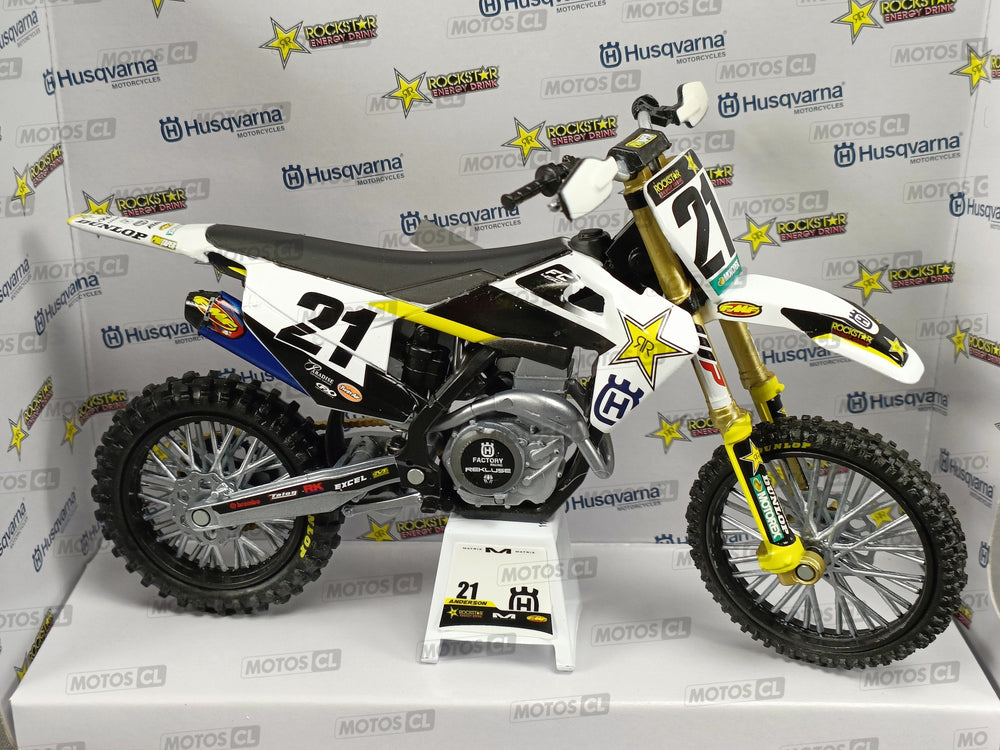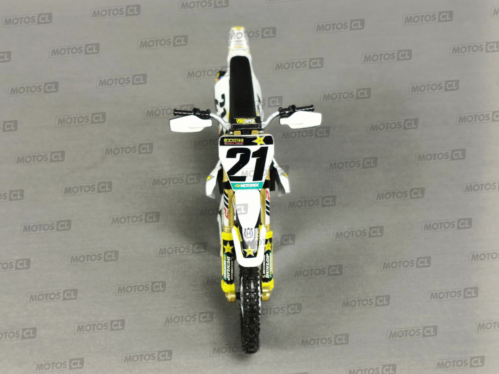 MINIATURE MOTOCROSS HUSQVARNA FC450 ROCKSTAR N°21 JASON ANDERSON 1/12ÈME / RN085-58233