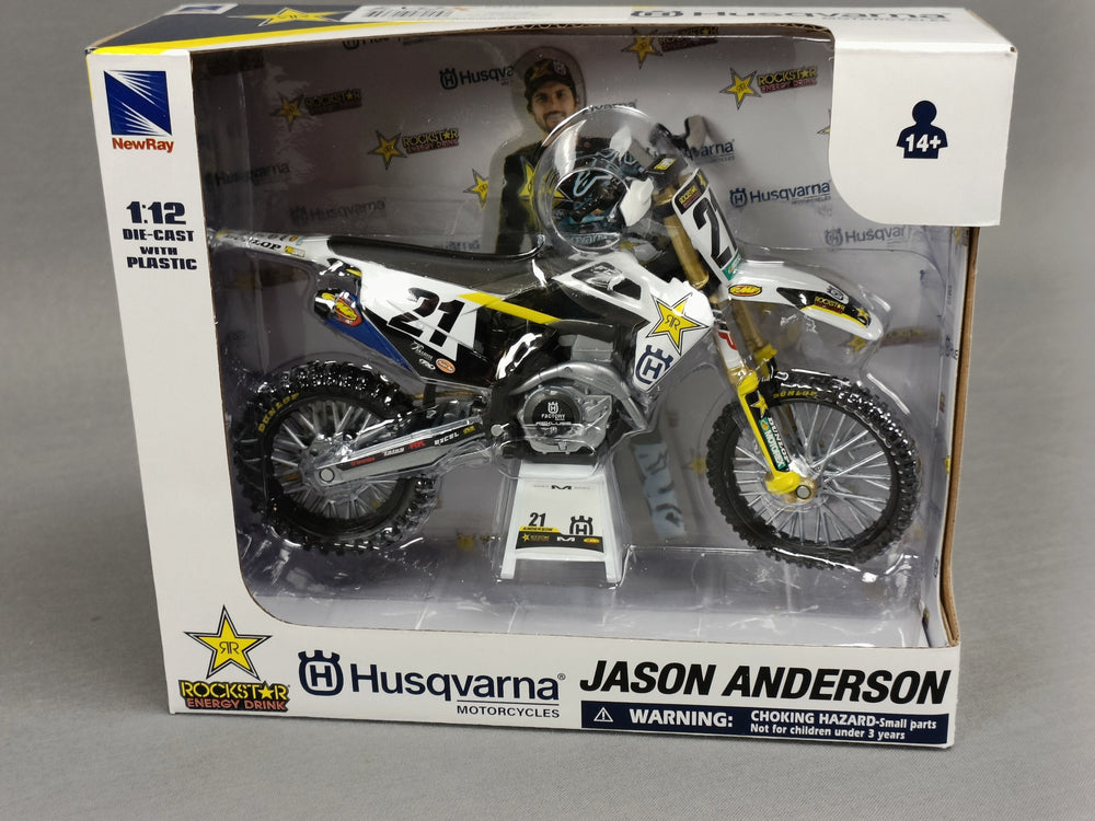 Miniature moto (échelle 1/12ème) Husqvarna FC450 Rockstar N°21 Jason ANDERSON, marque New ray.