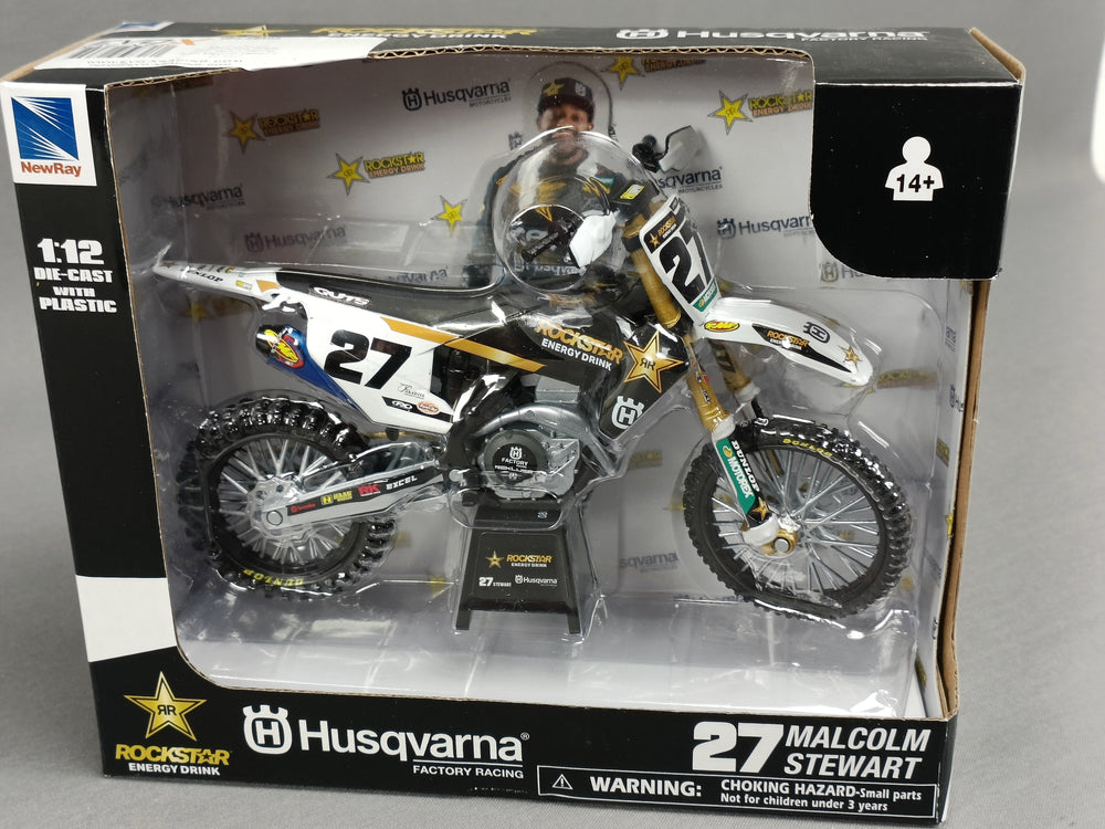 Miniature moto (échelle 1/12ème) Husqvarna FC450 Rockstar N°27 Malcom STEWART, marque New ray.