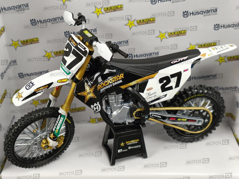 MINIATURE MOTOCROSS HUSQVARNA FC450 ROCKSTAR N°27 MALCOM STEWART 1/12ÈME / RN085-58403