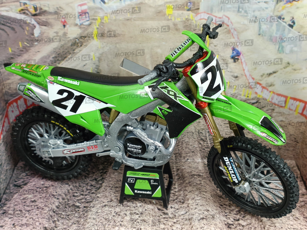 MINIATURE MOTOCROSS KAWASAKI KXF 450 N°21 JASON ANDERSON 1/12ÈME / RN085-58413