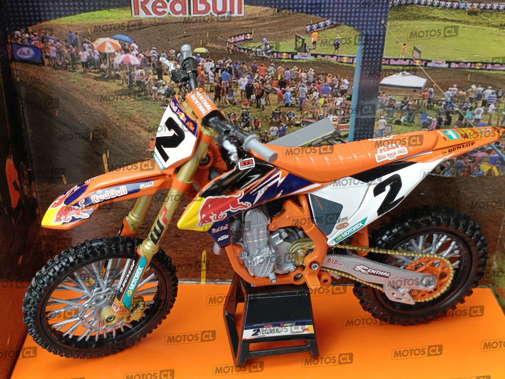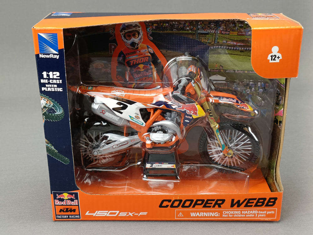 Miniature moto (échelle 1/12ème) KTM 450SX-F Red Bull Factory Team 2019 N°2 Cooper WEBB, marque New ray.