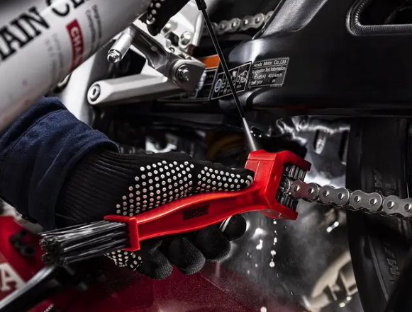 Le jet ultra puissant permet d'éliminer efficacement toutes les graisses et les saletés incrustées entre les maillons (sable, terre, graisses...). Chain Cleaner doit être utilisé avant chaque graissage de chaîne. Très pratique et facile à utiliser, le diffuseur multi position permet de pulvériser un jet précis grâce à sa tige rétractable accrochée sur le bouchon qui se plie et se déplie en un seul geste. Pour un résultat parfait, il est recommandé d'utiliser une brosse à chaîne vendue séparément, exemple photo N°6.