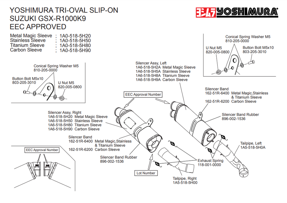 COLLIER DE SILENCIEUX TRI OVAL YOSHIMURA JAPON GSX-R1000 2009 À 2011 SUZUKI / RY16251R6400