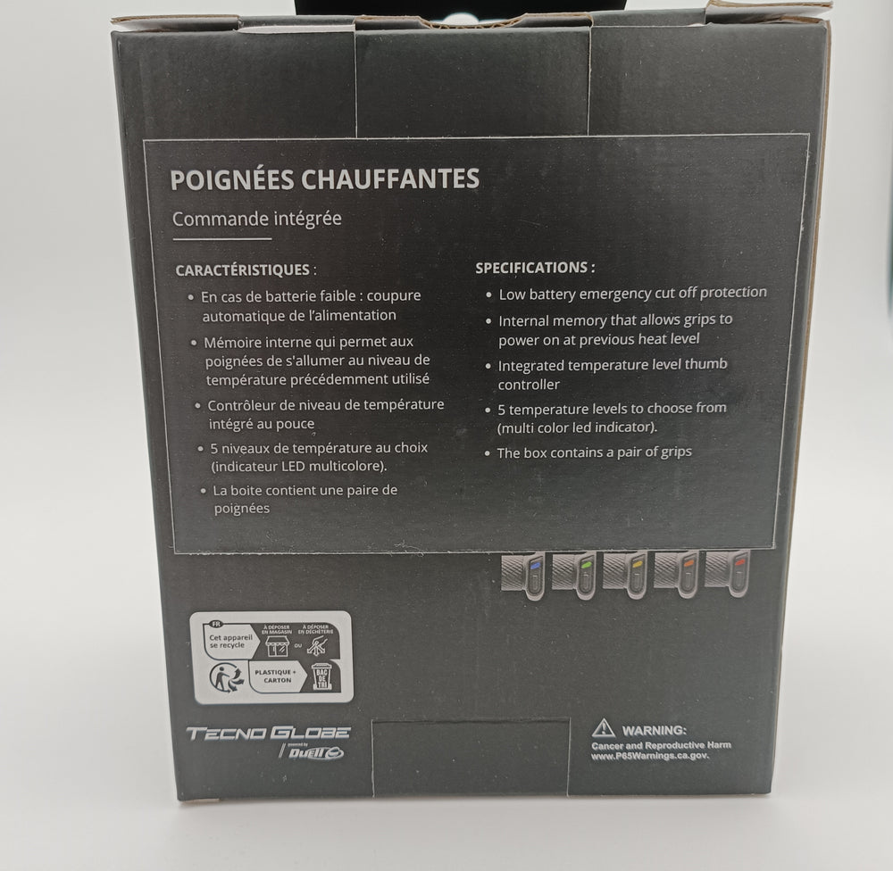 Possibilité de régler le niveau de T° avec le pouce grâce au contrôleur intégré, il y a 5 niveaux au choix avec indicateur LED multicolore. Mémoire interne qui permet aux poignées de s'allumer au niveau de température précédemment utilisé.