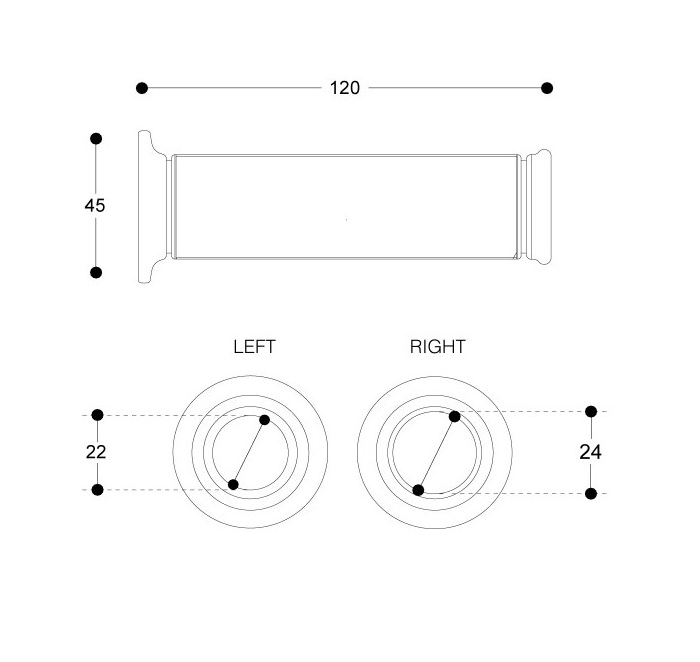 - Diamètre intérieur : 22mm côté gauche et 24mm coté poignée gaz