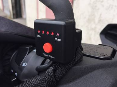 - Commande de la T° avec un seul bouton et 5 niveaux de chauffe indiqué avec LEDS lumineuses à fixer au guidon ou au carénage.