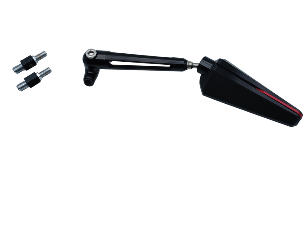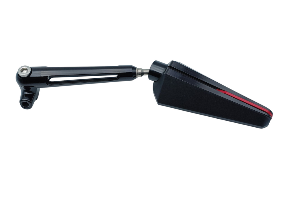 Rétroviseur Chaft universel réversible (droit ou gauche) en Aluminium modèle BRANDY noir et rouge, réglable, Ø10MM. Non homologué.
