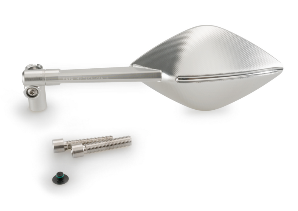 Rétroviseur universel Homologué PUIG en alu taillé dans la masse anodisé gris, modèle TOP-TECH I, montage sur le guidon côté gauche.