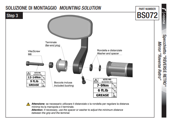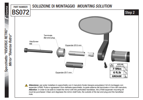 2. Pour les guidons creux, possibilité d'utiliser l'adaptateur Rizoma (vendu séparément et à l'unité, référence : LP200B pour les diamètres allant de 13mm à 20mm photo N°11 et N°12 ou BS830B pour les diamètres allant de 21mm à 23mm photo N°11 et N°13).