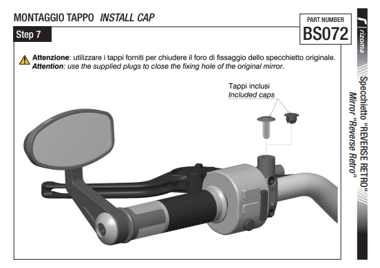 • 1 x Bouchon Ø8mm et 1 x Bouchon Ø10 mm en fonction du diamètre pour obstruer l'emplacement du rétroviseur d'origine (photo N°11)