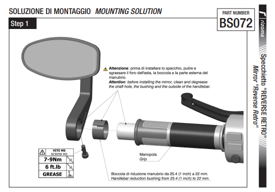 • 1 x Adaptateur de rétroviseur type embout de guidon