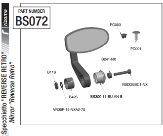 Rétroviseur universel Rizoma en alu taillé dans la masse anodisé noir, modèle REVERSE, montage en embout de guidon à droite comme à gauche. Réglable, possibilité de l'installer au-dessus, en dessous du guidon. Vitre bleutée anti-reflet.