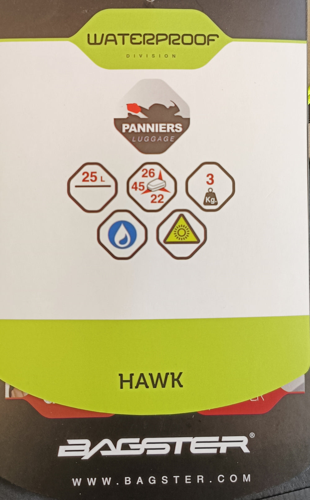 Sacoches cavalières étanches universelles, marque : Bagster, modèle Hawk.