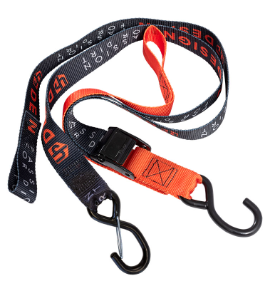 Sangles de transport moto, scooter, quad, jet ski, divers... Marque "Up Design", pratique, facile à utiliser. Couleur noir-orange.