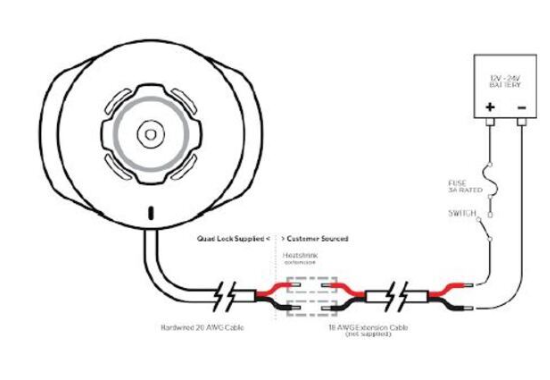 Compatible avec tous les supports Quad Lock® motos et les téléphones prévus au chargement sans fil. Le branchement doit être fait sur une alimentation + après contact ou en direct sur la batterie en intercalant un adaptateur intelligent étanche 12v (interrupteur et fusible de 3A référence : QLA-PBX, non fournit), ne pas brancher en direct sur le plus de la batterie, installation recommandée par un professionnel qualifié.