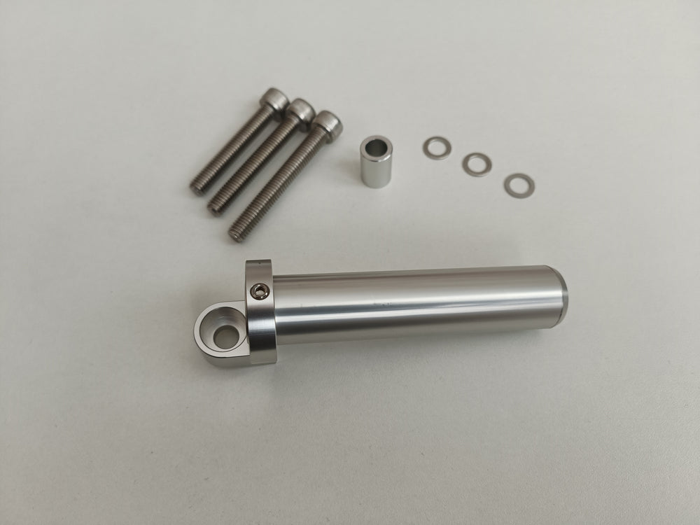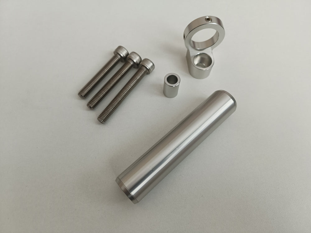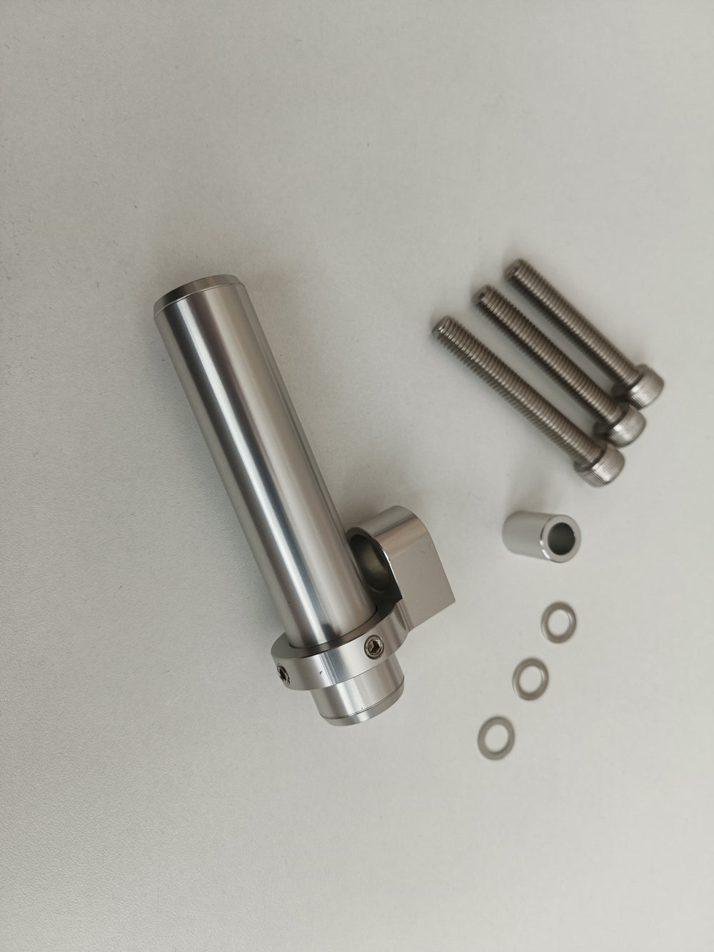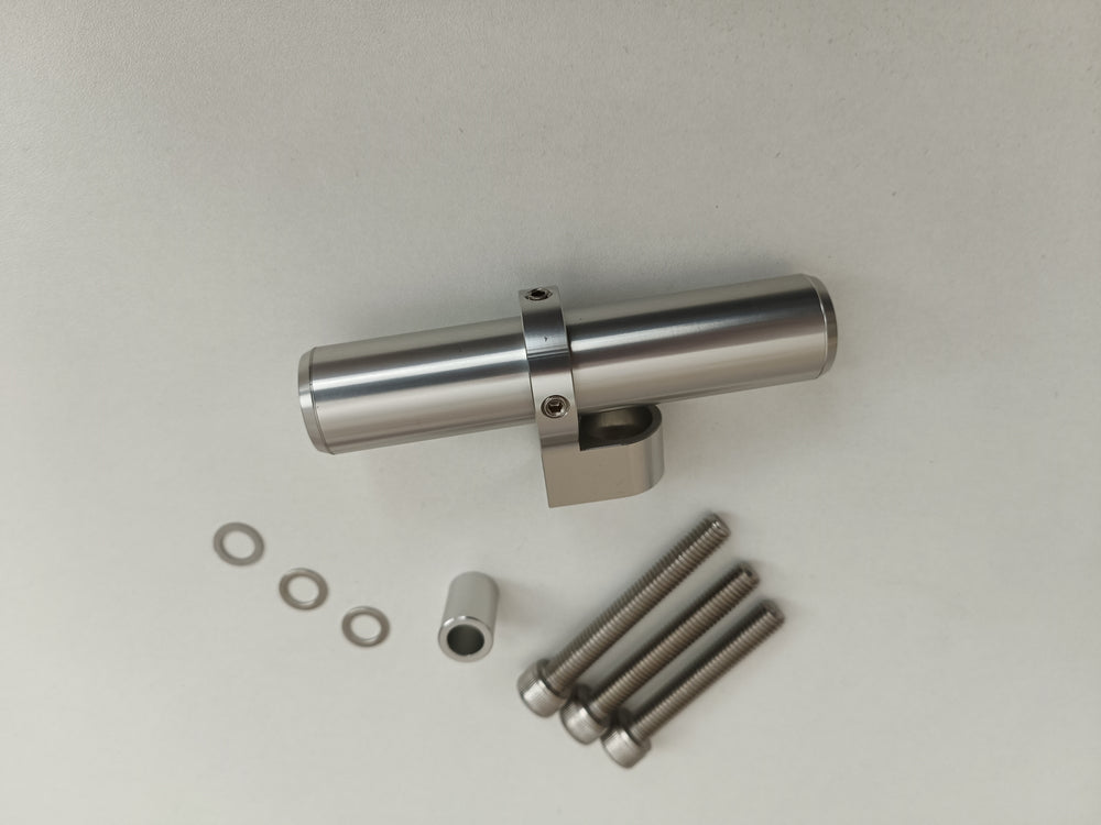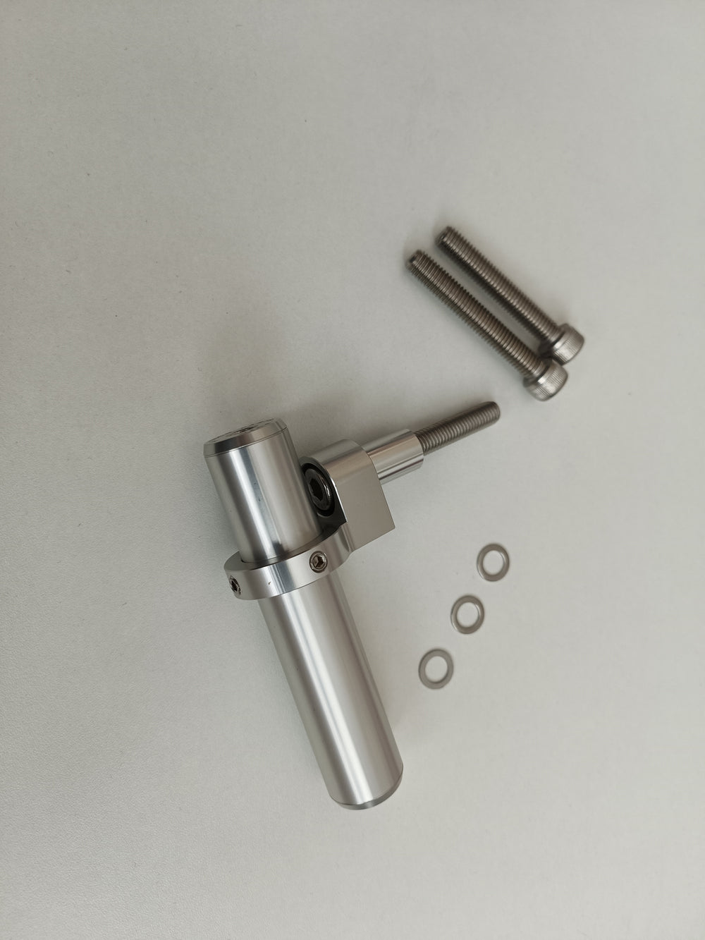Le tube peut coulisser et s'installer au milieu, à droite ou à gauche de la fixation. Exemple de montage sur la dernière photo.