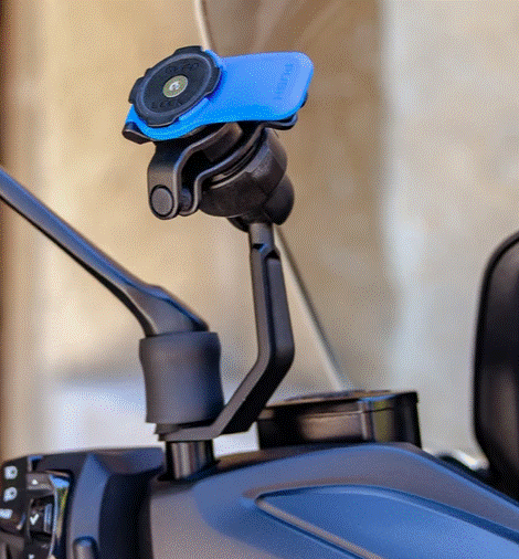 Support de téléphone Quad Lock® pour rétroviseur*, fixation sous tige de rétroviseur pour moto ou scooter, convient pour Ø10mm.