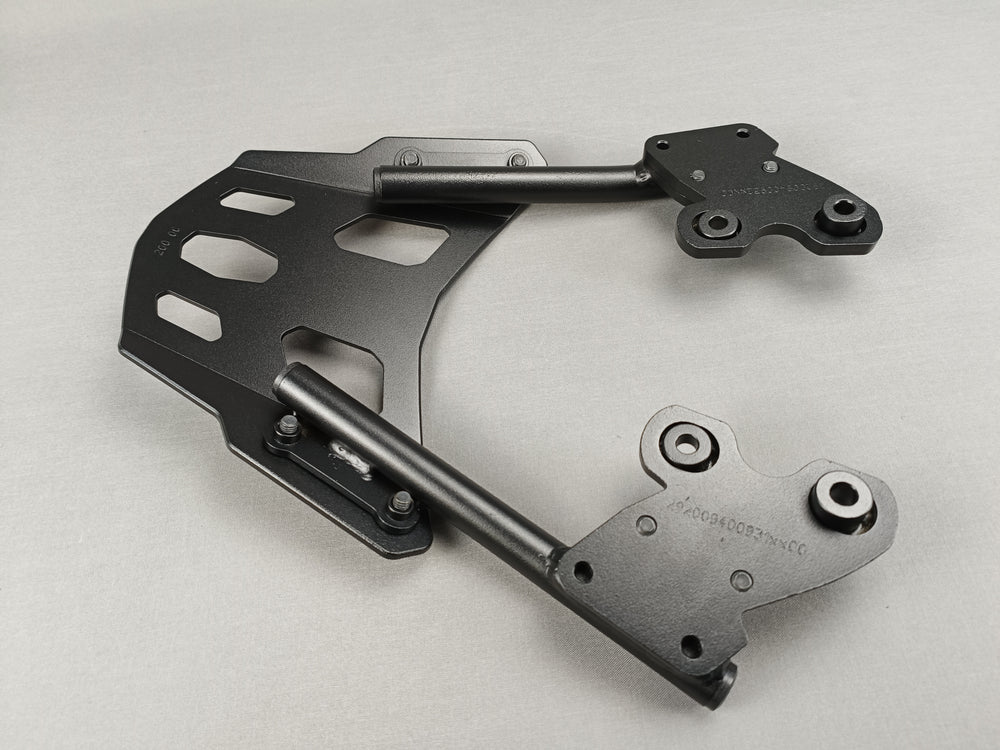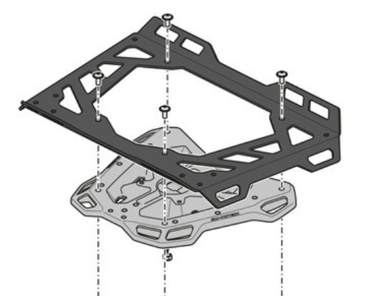 - Pour l'installation de top case, il existe une platine d'adaptation avec des fixations spécifiques en fonction des marques « SW Motech, Trax, Givi, Kappa, Krauser, Shad, Hepco et Becker » vendue séparément (exemple 6 ème photo).