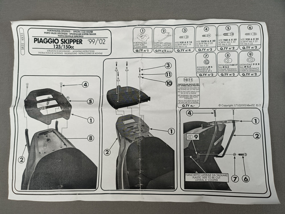 SUPPORT TOP CASE GIVI SKIPPER 125-150 1999 À 2002 / RGSR55 est en rupture de stock et sera expédié dès qu’il sera de retour en stock.