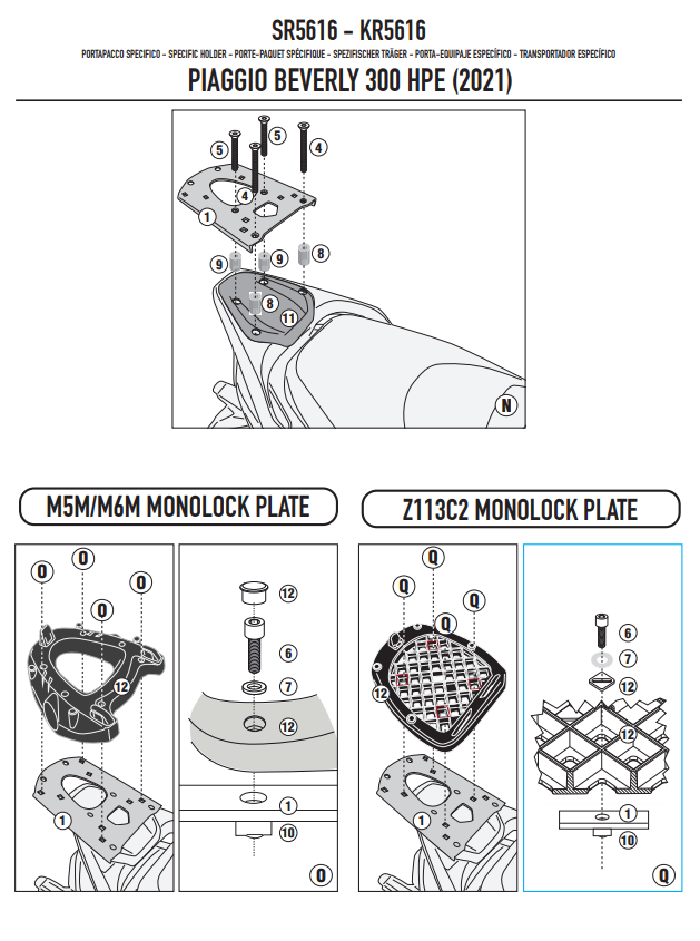 Possibilité d'installer tous les top cases Givi Monolock ou autres marques (Charge maximale 6Kg), platine à prendre dans le top case ou à commander séparément.