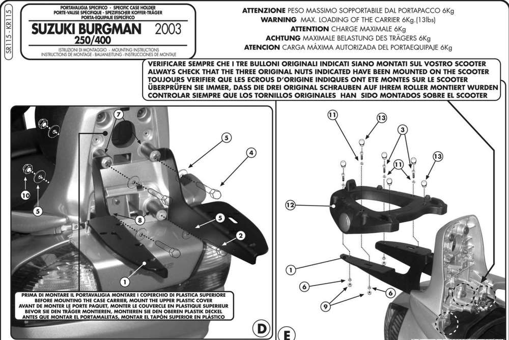 SUPPORT TOP CASE GIVI MONOKEY BURGMAN AN250-400 2003 À 2006 SUZUKI / RGSR115