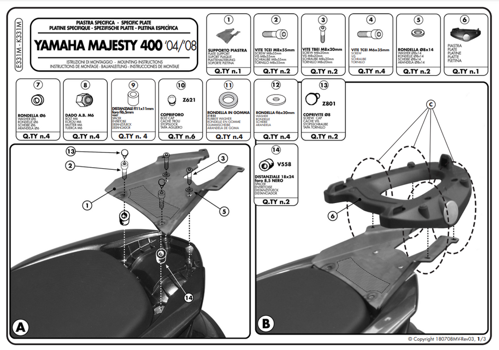 SUPPORT TOP CASE GIVI MONOLOCK MAJESTY400 2004 À 2014 YAMAHA / RGE331M