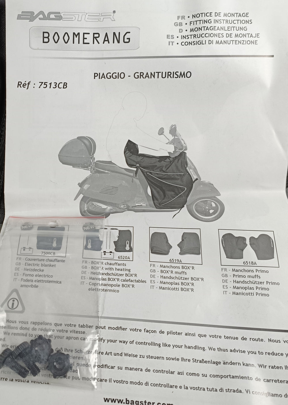 TABLIER BAGSTER VESPA GTS GRANTURISMO BOOMRANG / 7513CB