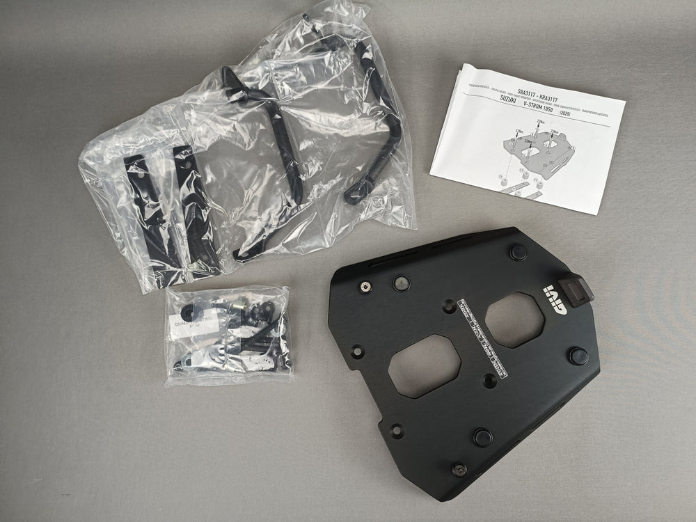 upport top cases spécifique* en aluminium anodisé noir, avec platine Monokey Givi pour Suzuki V-STROM1050 XT, SE et DE.