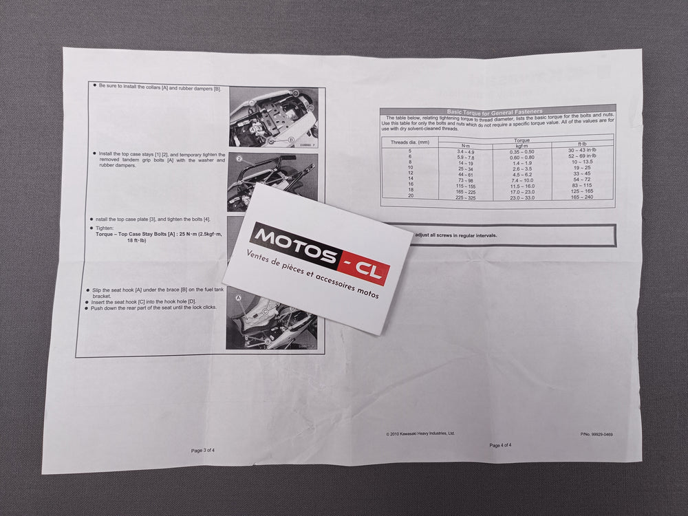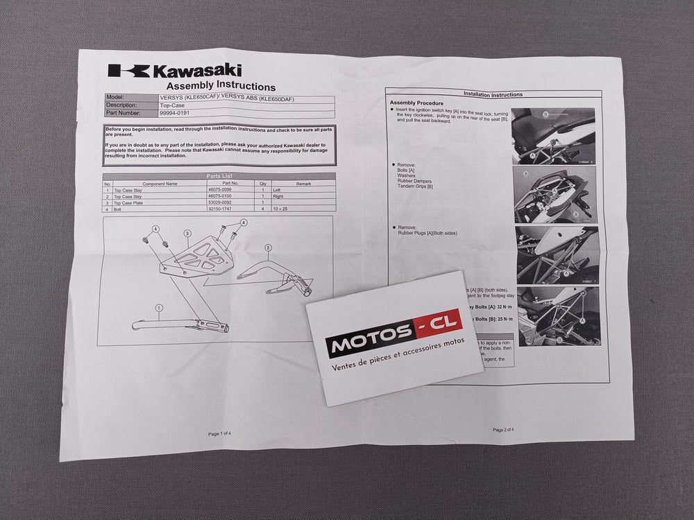 Support top case ou porte baguage, permet d'installer les top cases Kawasaki ou autres marques (Givi, Shad... ) en installant la platine correspondante à la marque choisie, pour Kawasaki Versys*