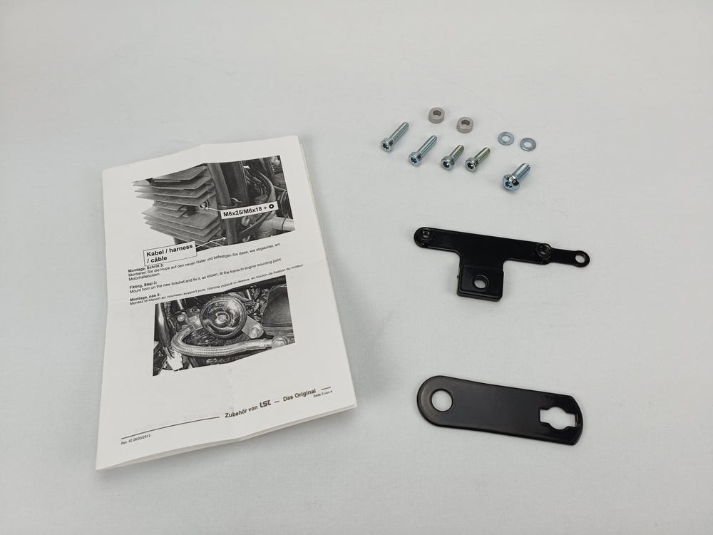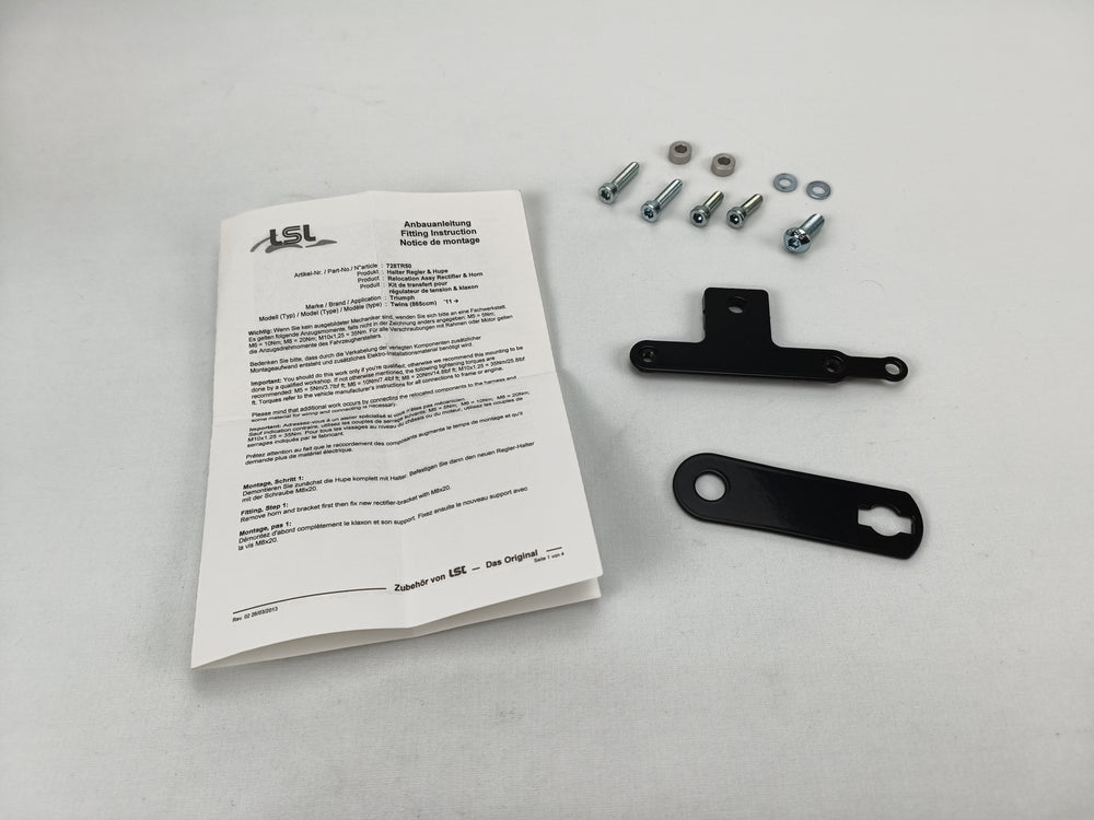 Le kit support LSL, permet de déplacer le régulateur au niveau du cadre sur le devant et le klaxon sur le côté gauche de la moto afin de pouvoir changer les supports et optique de phare (exemple de montage sur la 3ème photos).