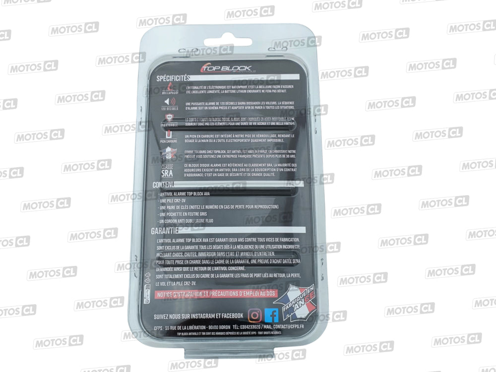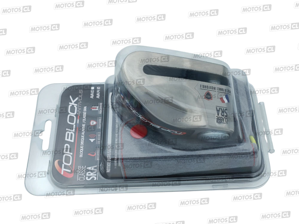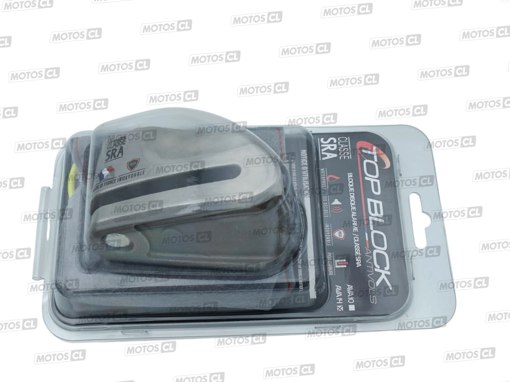 Protection contre le vol, antivol bloque disque alarme universel modèle AVA14 certifié classe SRA, axe Ø14mm* pour une résistance au sciage sans défauts, marque Top Block Fabriqué en France.